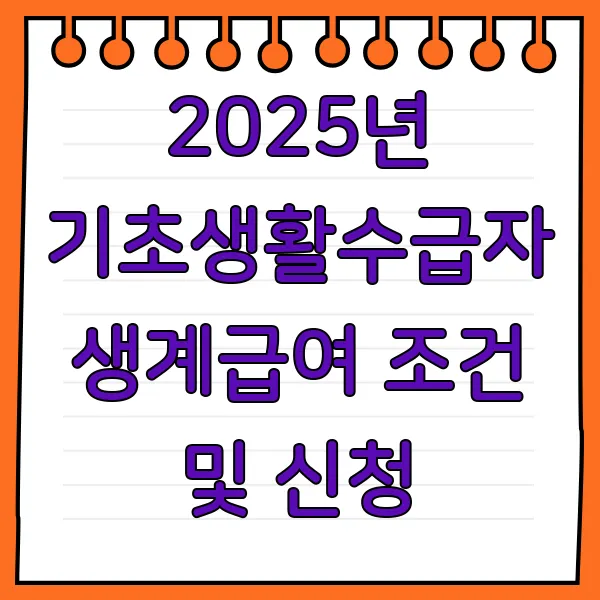 2025년 기초생활수급자 생계급여 조건 및 신청