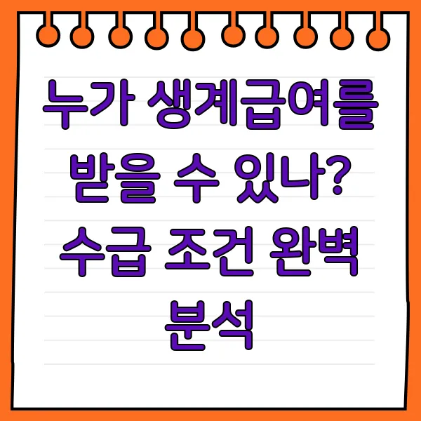 누가 생계급여를 받을 수 있나? 수급 조건 완벽 분석